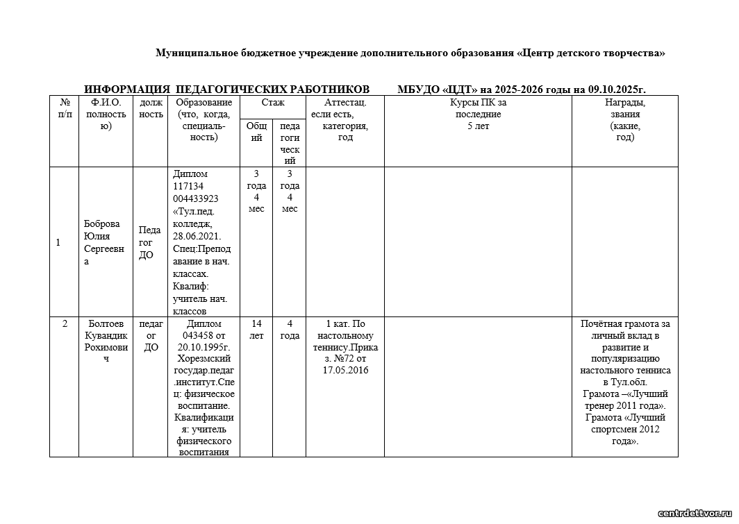 Отчет о результатах самообследования МБУДО «ЦДТ»